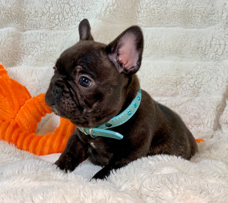 Bull-Dozer will be a medium smaller size. Both parents are small and compact. His body structure is small, blocky and compact He has gorgeous chocolate-brindle color. Parents are from Champion bloodlines, very small and show quality, very healthy. DNA health tested.